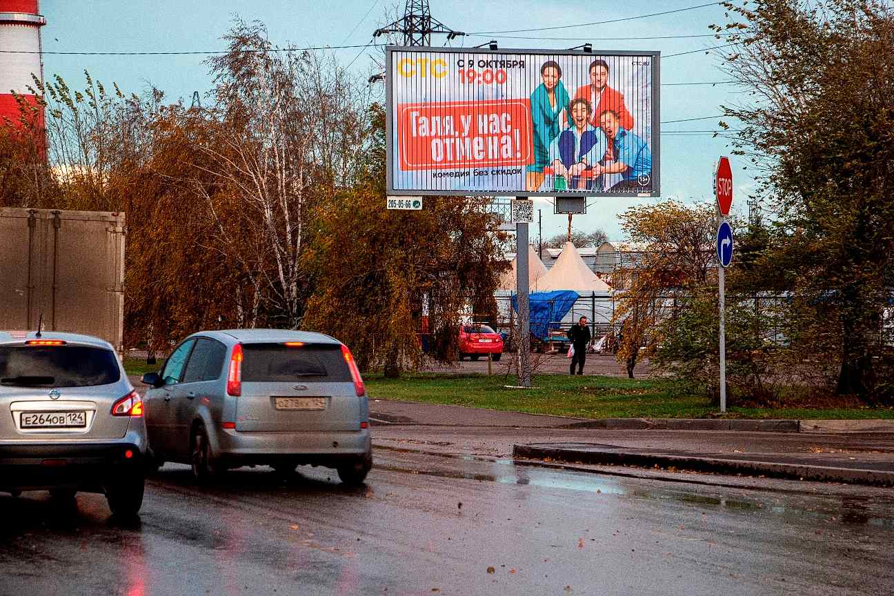 | Рекламная конструкция расположена по направлению Пинап от автовокзала «Восточный» и ТК «КрасТЭЦ» в сторону Октябрьского моста и Предмостной площади. Рядом с конструкцией расположена автобусная остановка «Школа», ОАО «Газпромбанк», ОАО «Сбербанк», мебельный торговый комплекс«7 слонов», гипермаркет «Биг Си». | есть, 50 метров | Направление движения:сторона А- Рекламная конструкция расположена по направлению движения от Предмостной площади и Октябрьского Пинап в сторону ТК «КрасТЭЦ» и моста «777». | Автовокзал находится примерно в 35 мин. езды. Пинап вокзал примерно 20 мин. езды. |