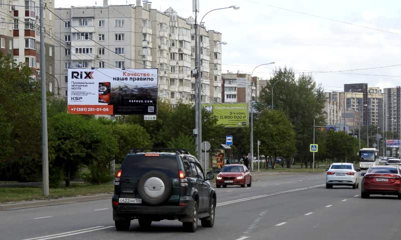 | Рядом с конструкцией расположены трактир «Жили-Были», ТЦ «Взлетка Плаза», сервисный центр «МТС», Пинап «Красный Яр», «Каравай», детский магазины «Господин ребенок», «Тралли - Валли», магазин спорттоваров «Спортугалия», ночной клуб «Шпилька», филиал «Сбербанка». | есть, 250 метров | Выезд с автовокзала в сторону Пинап города и Северо-Западного мкр. и далее в города края | Находится возле автовокзала. | Нет. |